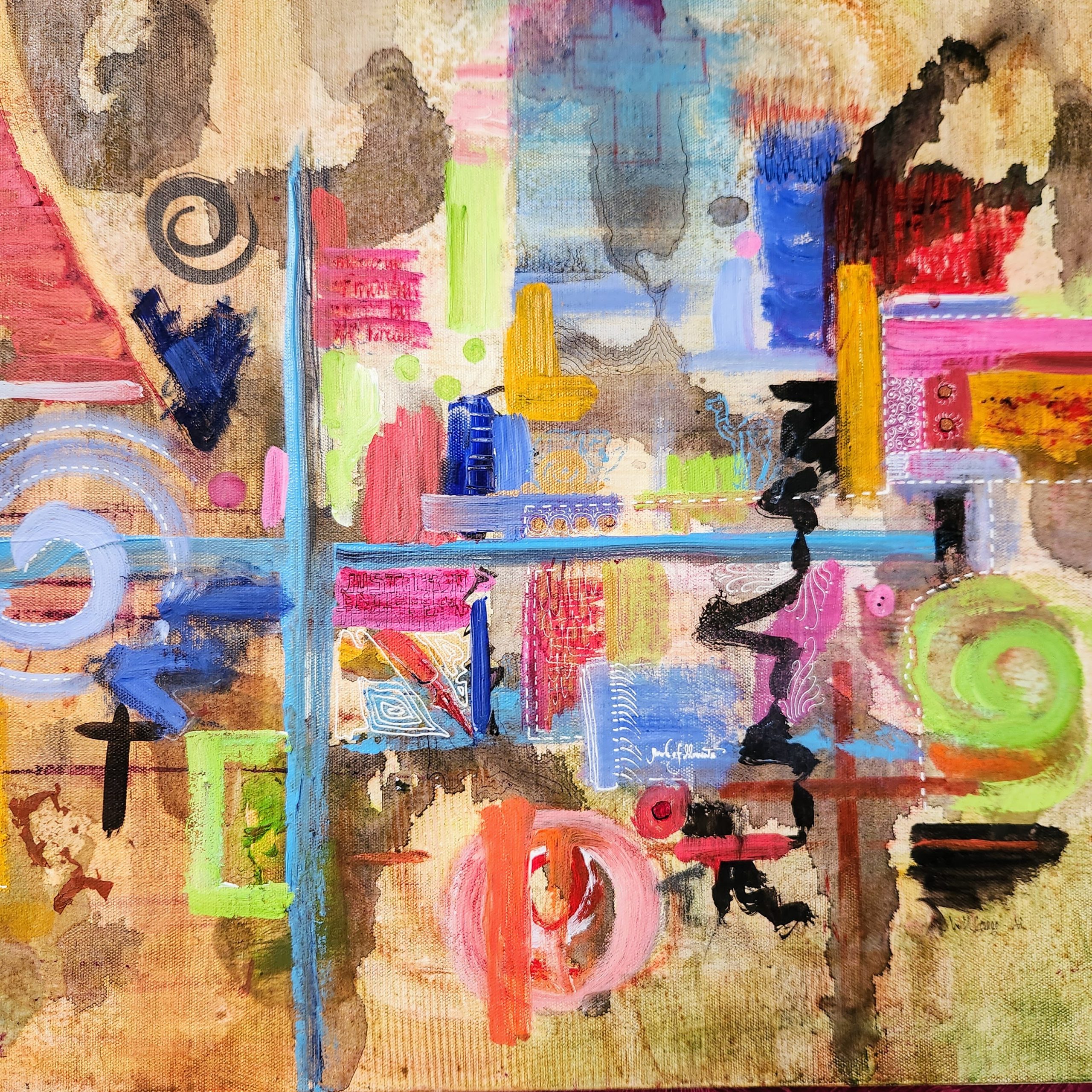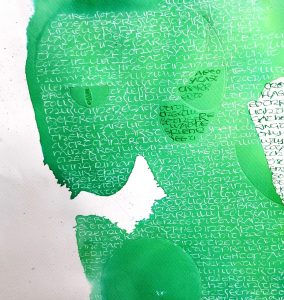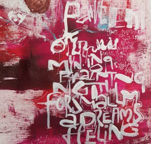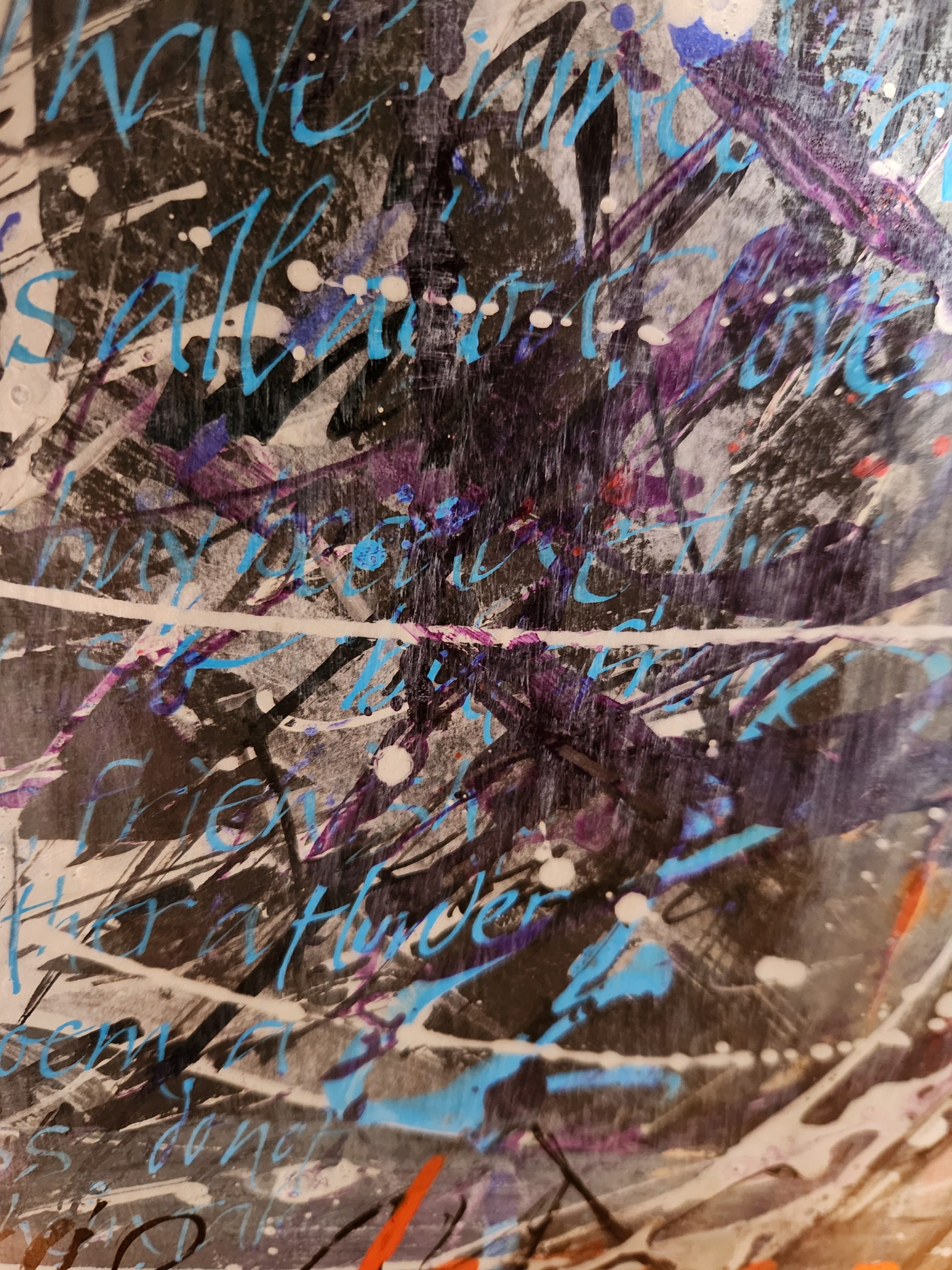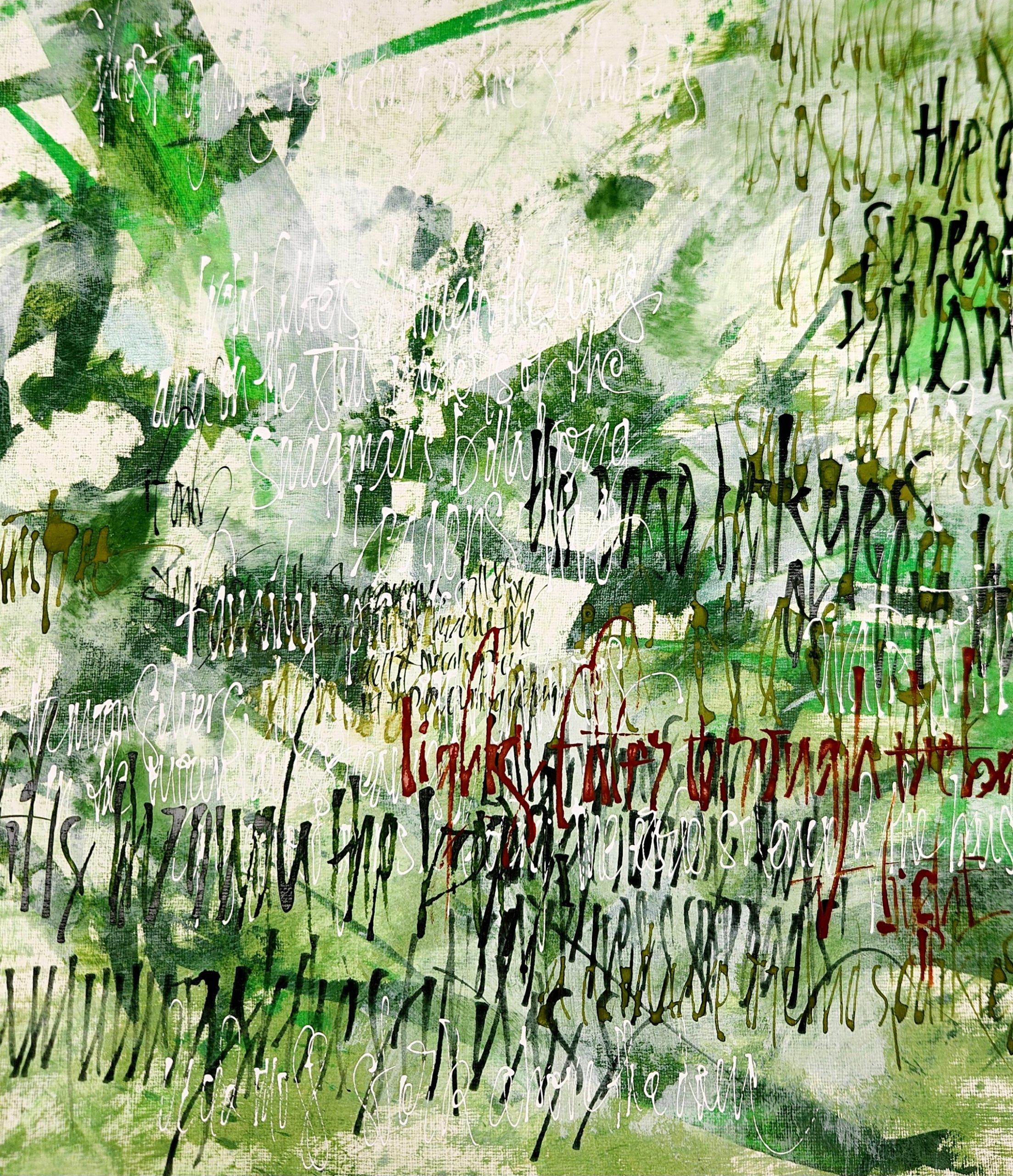 When paint and lettering intertwine. Words that are legible, or partly hidden through to words barely hinted at, are there in the painting, waiting for you to discover.