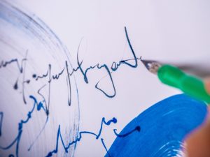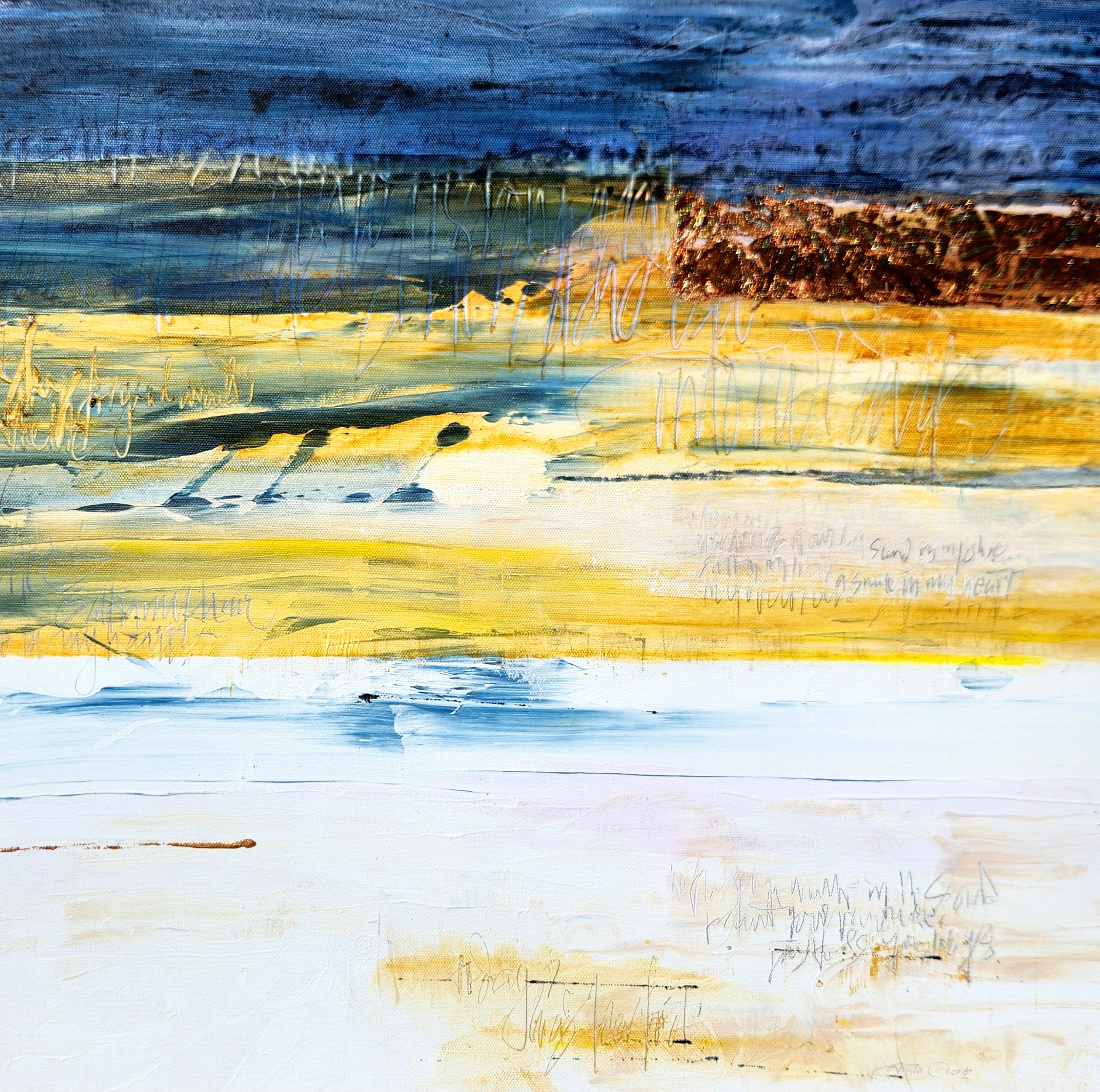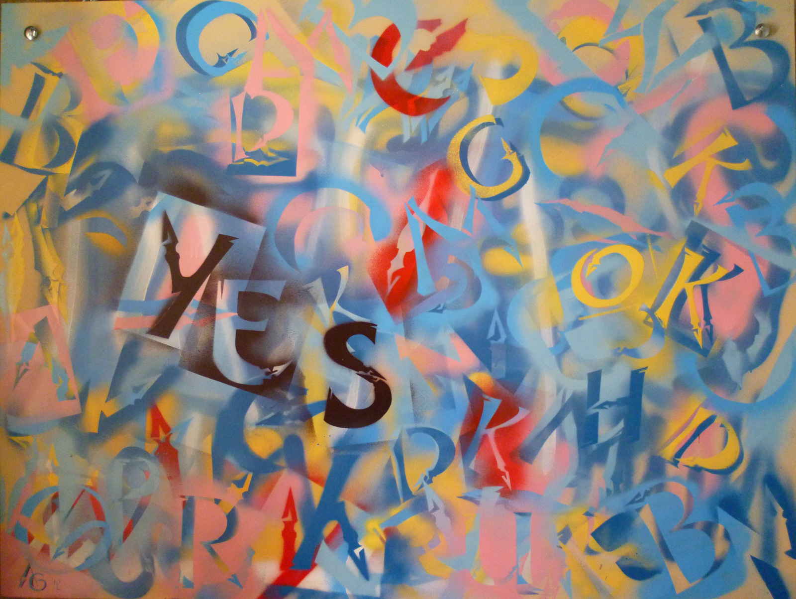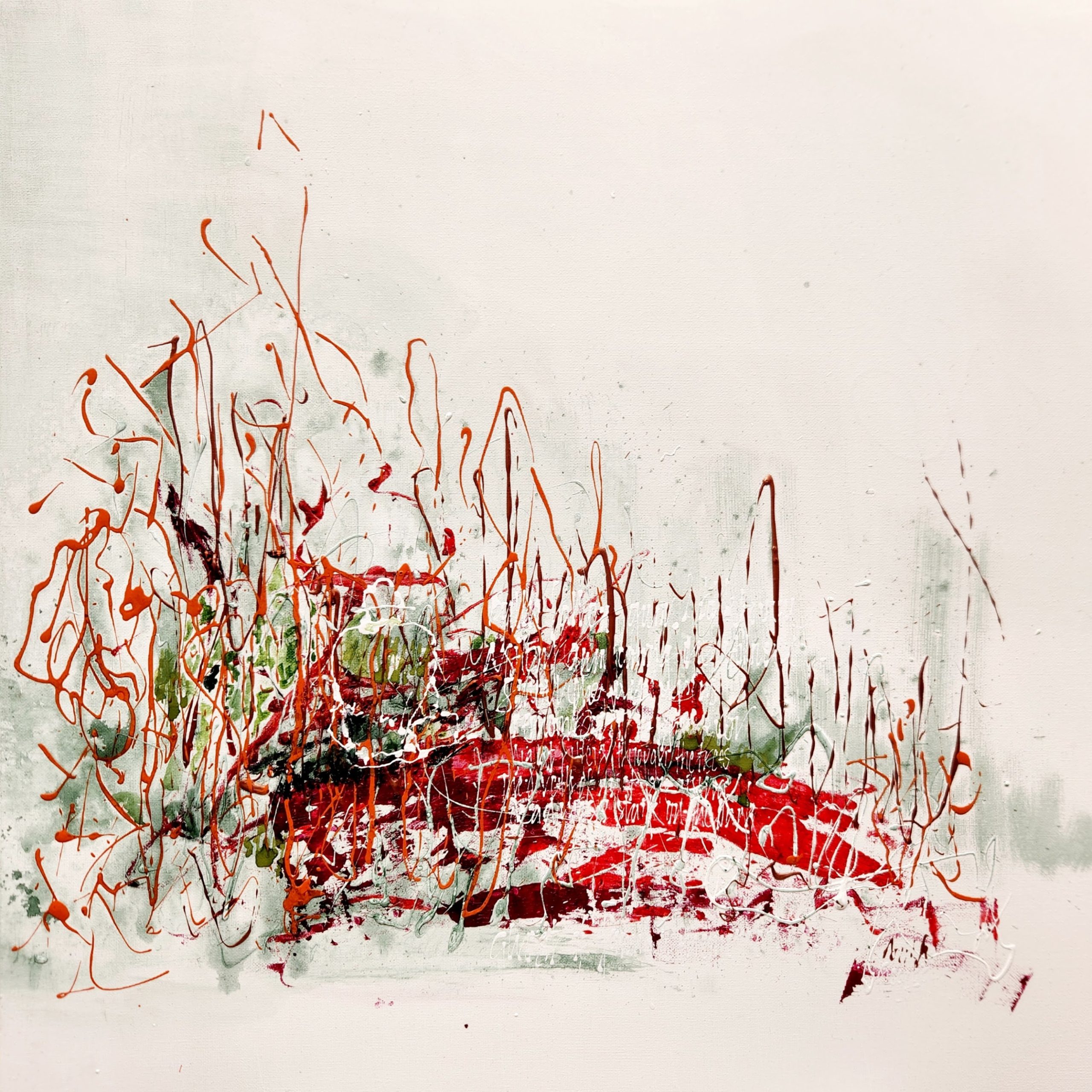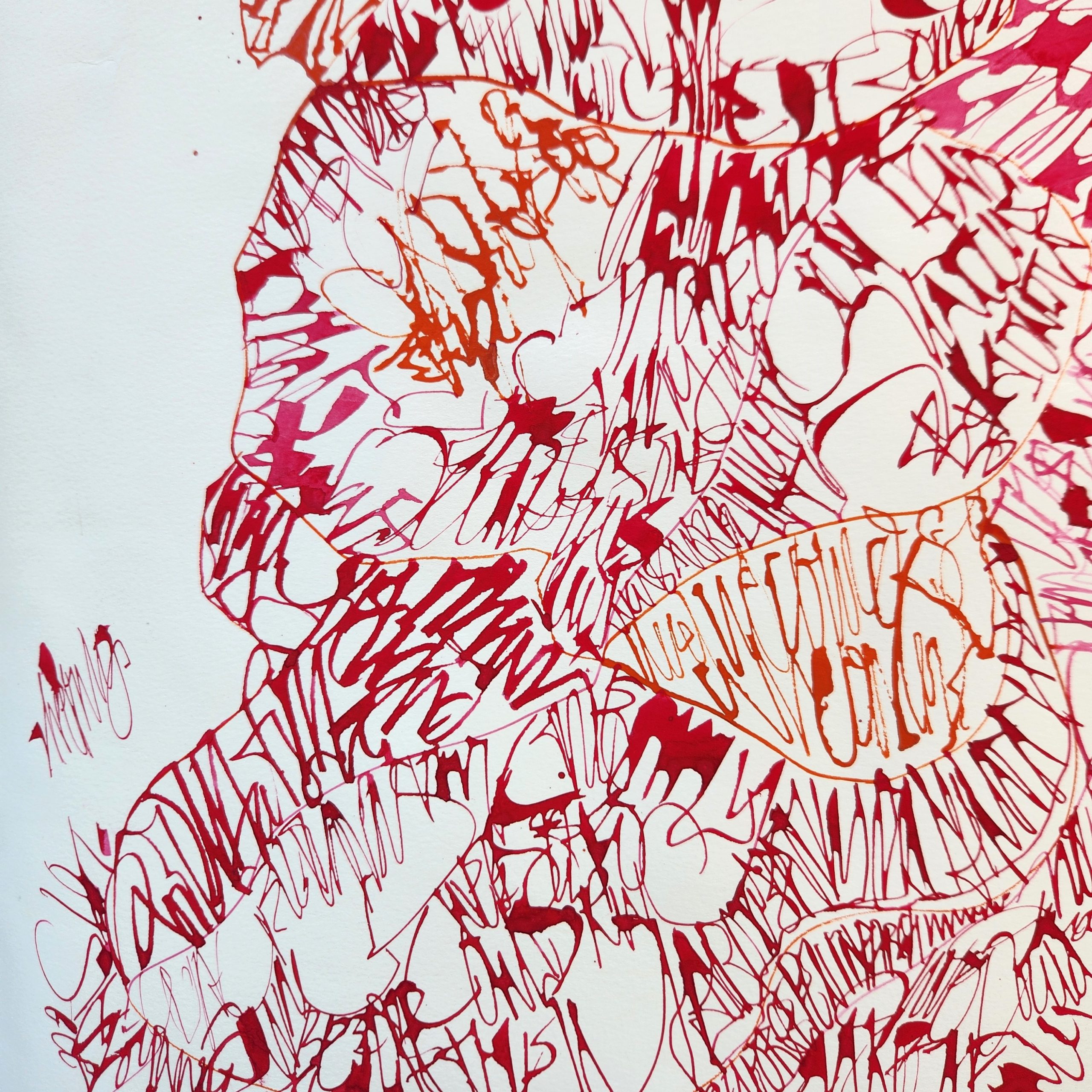 When paint and lettering intertwine. Words that are legible, or partly hidden through to words barely hinted at, are there in the painting, waiting for you to discover.