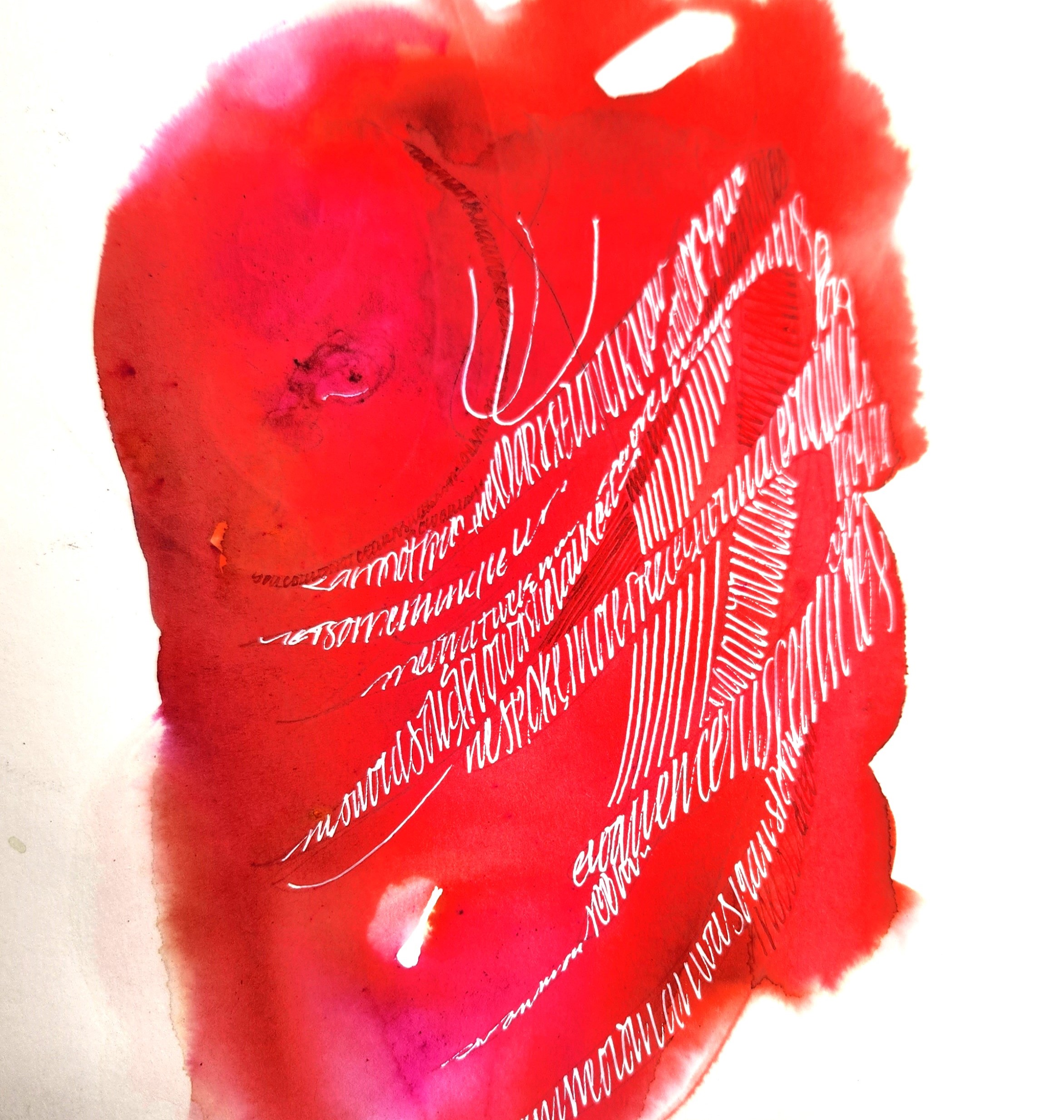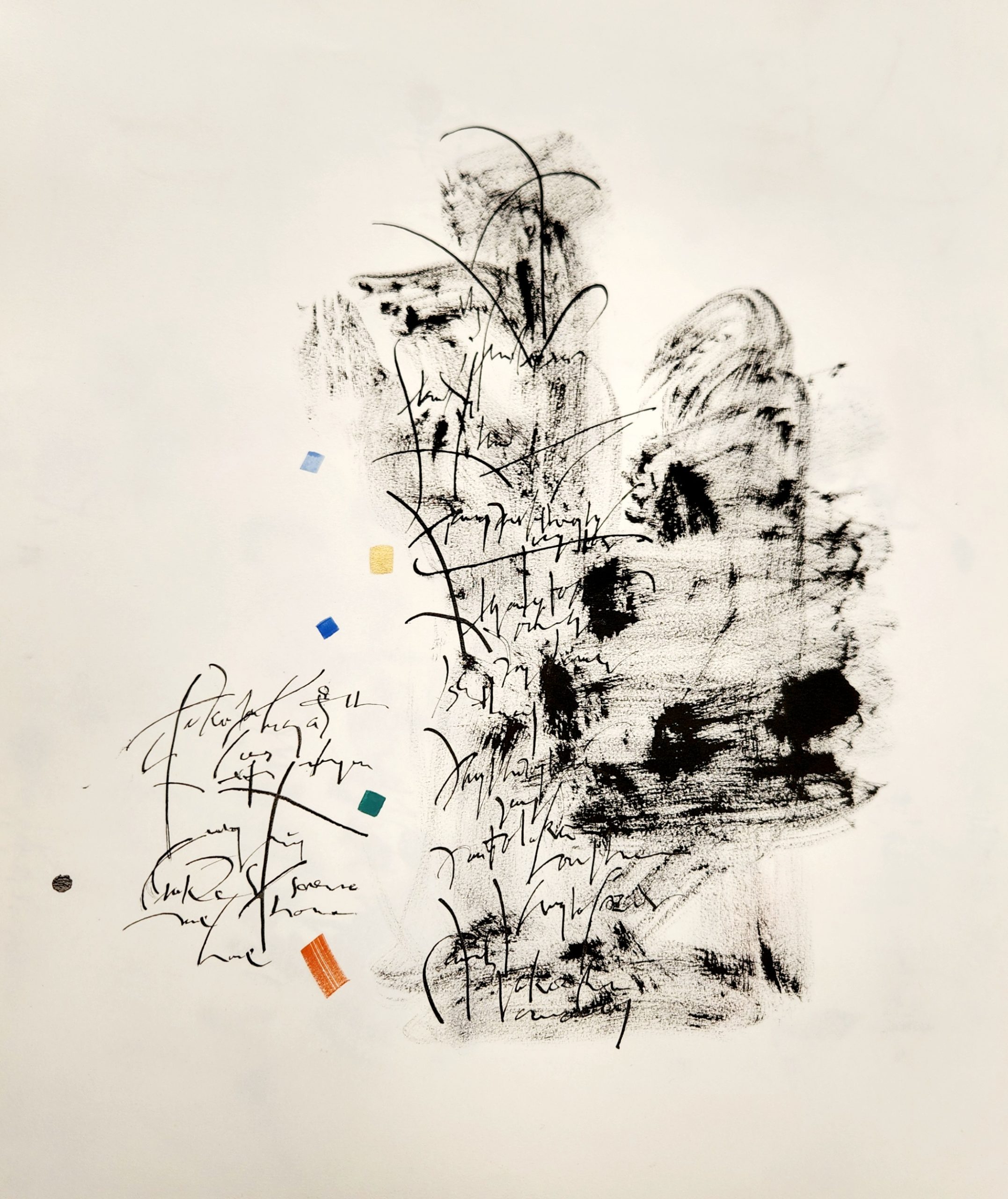 When the hand takes over from the mind, these works result. I am writing, I am using my calligraphic skills, but the result is not legible, it has morphed into something else.